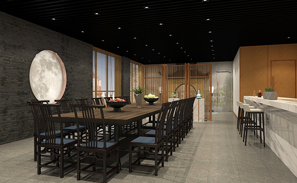 運用揚州園林中的多種表現(xiàn)手段,利用巧妙的空間布置,呈現(xiàn)出濃郁揚州特色的氛圍,同時增強空間帶來的尊貴體驗感。