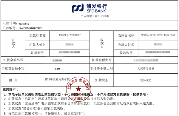 2021年善孝匯款回執(zhí)單(部分)
