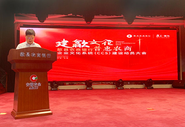 10月11日,安徽歙縣農(nóng)商銀行召開“建歙文化 普惠農(nóng)商”企業(yè)文化系統(tǒng)建設(shè)動員大會,標(biāo)志著安徽歙縣農(nóng)商銀行委托復(fù)大·復(fù)為策劃設(shè)計(jì)的企業(yè)文化系統(tǒng)項(xiàng)目正式啟動。歙縣農(nóng)商銀行高層領(lǐng)導(dǎo)和部門主要負(fù)責(zé)人、復(fù)大·復(fù)為項(xiàng)目組成員等100多人參加了動員大會。