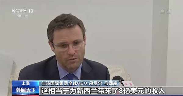 佳沛國際集團(tuán)全球CEO 丹尼爾·馬西森:中國是我們在世界上最重要的市場,我們供應(yīng)大約10萬噸獼猴桃,這相當(dāng)于為新西蘭帶來了8億美元的收入,進(jìn)博會對我們而言,是一個創(chuàng)造價值的好機(jī)會。