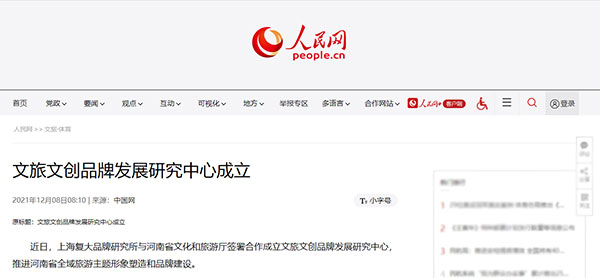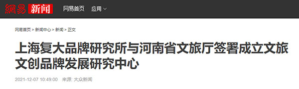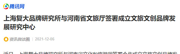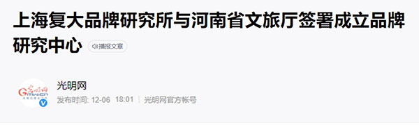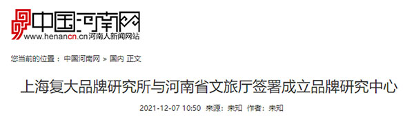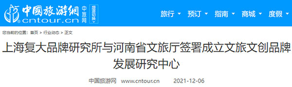 近日,上海復(fù)大品牌研究所與河南省文化和旅游廳簽署合作成立河南省文旅文創(chuàng)品牌發(fā)展研究中心,推進(jìn)河南省全域旅游主題形象塑造和品牌建設(shè)。人民網(wǎng)、光明網(wǎng)、中國(guó)旅游網(wǎng)等權(quán)威媒體關(guān)注報(bào)道。