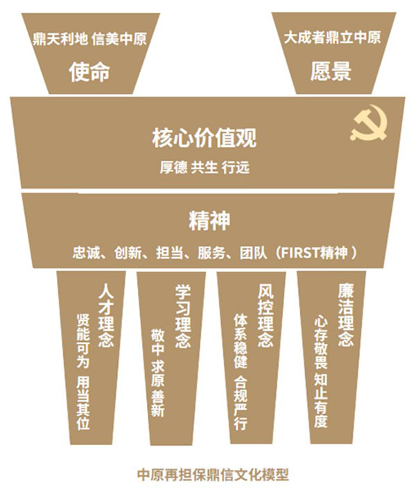 中原再擔(dān)保集團(tuán)是響應(yīng)國(guó)家戰(zhàn)略舉措成立的、河南省唯一的政府性再擔(dān)保機(jī)構(gòu),也是全國(guó)最大的再擔(dān)保機(jī)構(gòu)之一,為河南省融資擔(dān)保機(jī)構(gòu)提供再擔(dān)保增信、分險(xiǎn)和引導(dǎo)服務(wù),為重大項(xiàng)目建設(shè)等提供融資擔(dān)保服務(wù),發(fā)揮服務(wù)河南省經(jīng)濟(jì)發(fā)展的“穩(wěn)定器”和“放大器”作用。作為中國(guó)再擔(dān)保行業(yè)的“領(lǐng)頭羊”,中原再擔(dān)保集團(tuán)的企業(yè)文化建設(shè)不僅關(guān)乎著集團(tuán)未來(lái)的發(fā)展,也是發(fā)揮文化力量助推行業(yè)發(fā)展的責(zé)任所在。
