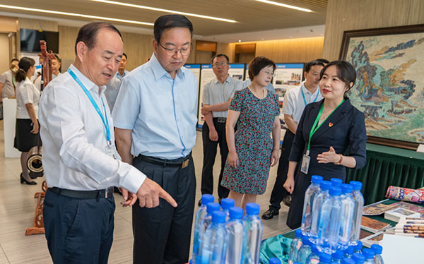甘肅文旅集團黨委書記、董事長石培文向張世珍副省長介紹文旅文創(chuàng)商品