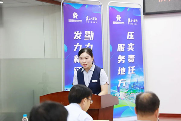 上海復(fù)為項(xiàng)目組代表在會(huì)議上介紹項(xiàng)目?jī)?nèi)容,說(shuō)明建設(shè)作業(yè)進(jìn)程和專項(xiàng)調(diào)研計(jì)劃。