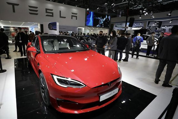 汽車(chē)展區(qū),特斯拉Model S Plaid車(chē)型國(guó)內(nèi)首秀。