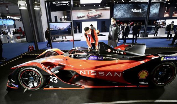 汽車(chē)展區(qū),日產(chǎn)汽車(chē)展臺(tái)展示的新款跑車(chē)。