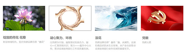 項(xiàng)目組將這兩種文化因子融合到黨建品牌的策劃設(shè)計(jì)中,既體現(xiàn)金湖農(nóng)商銀行服務(wù)地方經(jīng)濟(jì)發(fā)展的責(zé)任,也時(shí)刻警醒著作為黨員必須堅(jiān)守廉潔自律的準(zhǔn)則。經(jīng)內(nèi)外部多次探索論證后,項(xiàng)目組將金湖農(nóng)商銀行黨建品牌命名為“鑫荷”,代表了對黨的忠誠與事業(yè)的追求,是金湖農(nóng)商人對黨的莊嚴(yán)承諾。