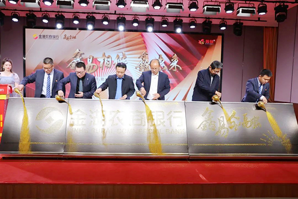 發(fā)布會上,舉行了金湖農(nóng)商銀行 “鑫易金融”文化品牌發(fā)布儀式?;窗彩械胤浇鹑诒O(jiān)督管理局黨組書記、局長徐洪云,人民銀行淮安市中心支行黨委委員、副行長何綱,淮安銀保監(jiān)分局黨委委員、副局長潘勇,復(fù)為策劃設(shè)計集團陳云勇博士,金湖農(nóng)商銀行黨委書記、董事長周碩令,黨委副書記、行長邱馳等共同開啟了金湖農(nóng)商銀行全新文化品牌。