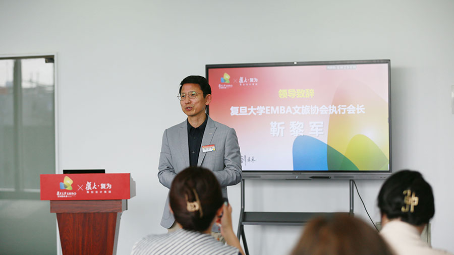 主題活動(dòng)在復(fù)旦大學(xué)文旅協(xié)會(huì)執(zhí)行會(huì)長(zhǎng)靳黎軍先生的致辭中拉開帷幕。復(fù)旦大學(xué)文旅協(xié)會(huì)是在復(fù)旦大學(xué)EMBA理事會(huì)的指導(dǎo)下組建成立,會(huì)員包括同程旅行集團(tuán)、上海航空國(guó)際旅游集團(tuán)、上海華養(yǎng)健康管理集團(tuán)、復(fù)為策劃設(shè)計(jì)集團(tuán)等100多家校友單位。