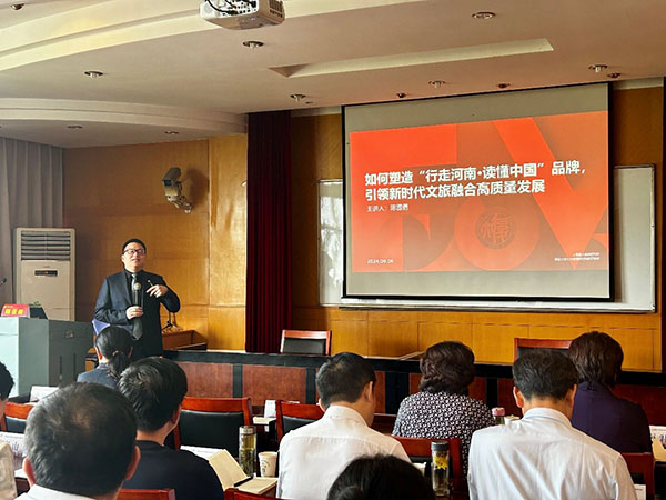 9月6日,上海復(fù)大品牌研究所所長(zhǎng),復(fù)旦大學(xué)東方管理研究院教研基地主任、研究生導(dǎo)師,復(fù)旦大學(xué)EMBA文旅協(xié)會(huì)副會(huì)長(zhǎng)陳云勇博士受邀就“如何塑造‘行走河南·讀懂中國(guó)’品牌,引領(lǐng)新時(shí)代文旅融合高質(zhì)量發(fā)展”作專題授課。陳博士圍繞“行走河南·讀懂中國(guó)”品牌,深入淺出地分析了當(dāng)前文旅消費(fèi)背景,“行走河南·讀懂中國(guó)”品牌建設(shè)指導(dǎo)思想。以及為河南省文旅文創(chuàng)融合發(fā)展和文旅產(chǎn)業(yè)創(chuàng)新發(fā)展給出了新的思維、方法和建議。當(dāng)課堂上提出如何理解“行走河南走哪里?行走河南如何走?讀懂中國(guó)讀什么?讀懂中國(guó)懂什么?”時(shí),引起全場(chǎng)共鳴。陳博士授課內(nèi)容豐富,實(shí)戰(zhàn)性強(qiáng),全程沒有講概念,盡是干貨。