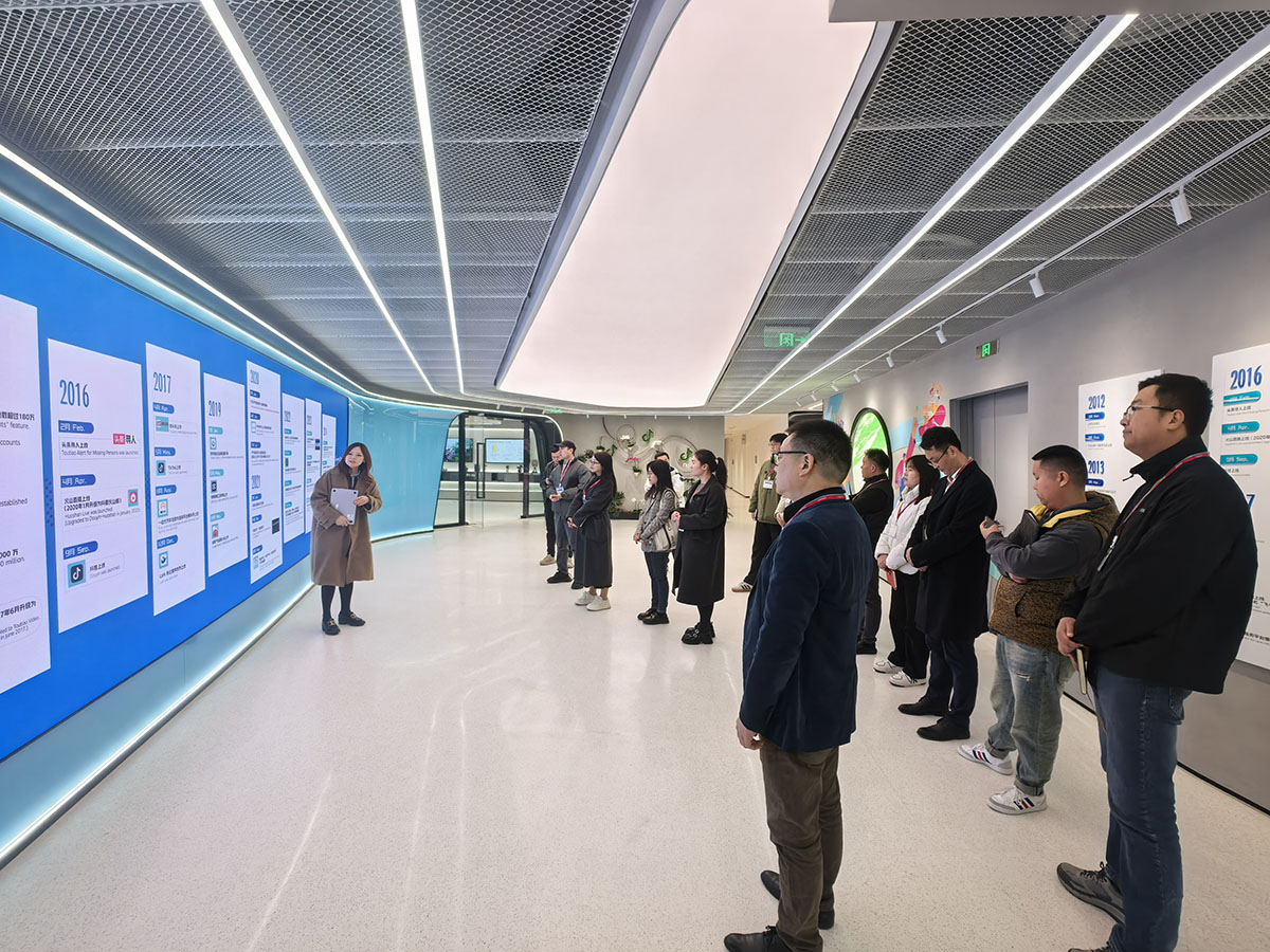 抵達字節(jié)跳動上??偛亢螅瑥蜑閳F隊受到了熱情接待。在工作人員的引領(lǐng)下,參觀了充滿科技感與創(chuàng)新氛圍的辦公環(huán)境,零距離感受字節(jié)跳動的發(fā)展歷程、企業(yè)文化、抖音集團以及在短視頻、直播等領(lǐng)域取得的成就。深刻感受到了引領(lǐng)行業(yè)潮流的科技企業(yè)的獨特魅力。