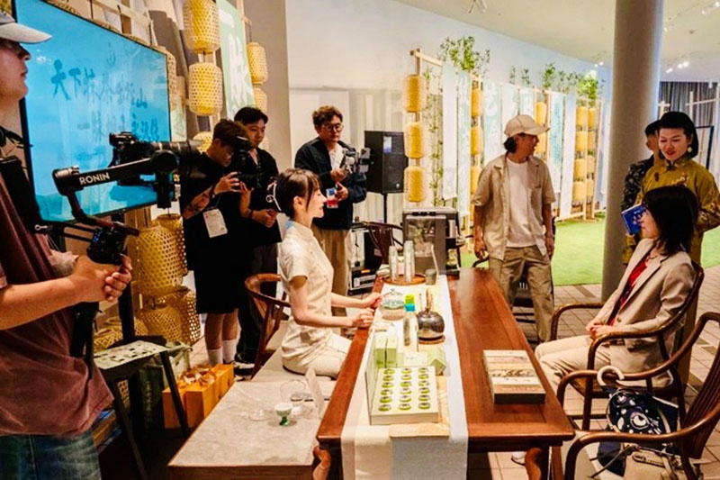 2025年日本國際博覽會協(xié)會國際關(guān)系局聯(lián)絡(luò)主任折原真子,大阪世博會世博館運營總協(xié)調(diào)官孫怡,2025年大阪世博會世博館指定服裝囍陸品牌董事長陸棋燕,杭州市茶文化研究會常務(wù)副會長周鋒,中國工藝美術(shù)學(xué)會紋樣研發(fā)中心主任孫若溪等出席開幕式的嘉賓,頻頻點贊好評。