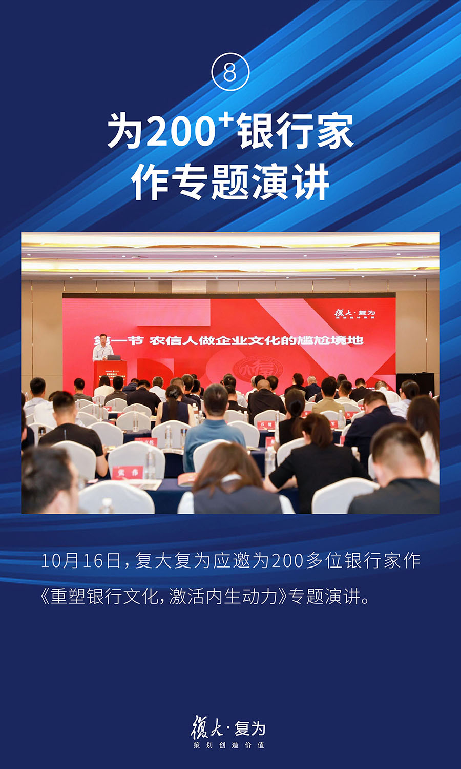 2019年1月14日,在中天集團(tuán)2019新年工作會(huì)議暨七三規(guī)劃發(fā)布儀式上,復(fù)大?復(fù)為作為中天集團(tuán)品牌戰(zhàn)略策劃?rùn)C(jī)構(gòu),應(yīng)邀出席大會(huì)并給中天控股集團(tuán)中高層管理者和下屬機(jī)構(gòu)高管現(xiàn)場(chǎng)解讀集團(tuán)全新的品牌戰(zhàn)略系統(tǒng)。