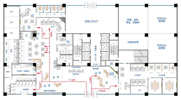 標(biāo)準(zhǔn)型網(wǎng)點(diǎn)人流動(dòng)線: