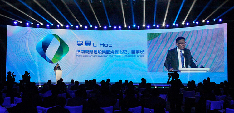 承泰山之高度,融黃河之氣度,載儒家之厚度。隨著與會(huì)嘉賓一同點(diǎn)亮環(huán)形巨幕,濟(jì)高控股全新品牌LOGO正式亮相泉城。在傳承 “山·水·誠”這一核心文化理念的基礎(chǔ)上,新品牌形象以藍(lán)、綠兩色為基調(diào),寓意濟(jì)高控股將持續(xù)聚焦新舊動(dòng)能轉(zhuǎn)換、助力“生態(tài)賦能”發(fā)展,同時(shí)采用形意結(jié)合的方式,將泉城清蓮君子之花、蝶變東城創(chuàng)新之窗、漢峪金谷智慧之眼等代表形象以及一體兩翼核心業(yè)務(wù)布局、和合篤行價(jià)值觀念等企業(yè)文化要素融入其中,彰顯了濟(jì)高控股將以“發(fā)展高新,造夢新城”為使命,以“動(dòng)能轉(zhuǎn)換,生態(tài)賦能”為責(zé)任,堅(jiān)守“和合篤行,誠啟未來”的價(jià)值觀念,堅(jiān)持“激情、創(chuàng)新、共贏”的企業(yè)精神,向著“世界一流高科技園區(qū)運(yùn)營商”的目標(biāo)進(jìn)發(fā)。