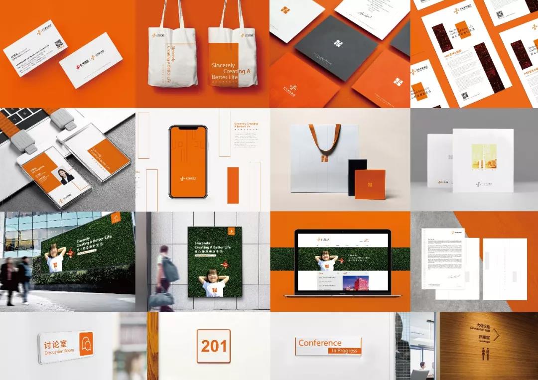 在中天美好集團全新視覺形象設(shè)計應用中,不僅融入了代表美好意向的風車和萬家燈火的概念,在色彩運用中還采用了更加溫馨、陽光的“美好橙”,讓人倍感溫暖、活力。